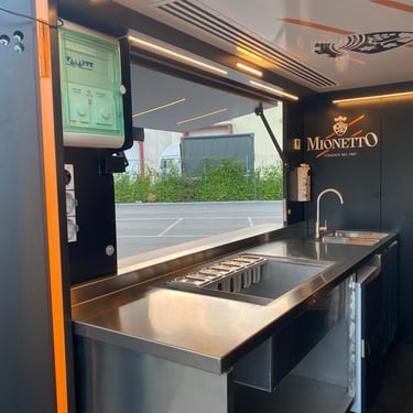 Il sole, il caldo, il mare ed i cocktail, cosa chiedere di più? Dipende da che parte del banco si sta! Per lavorare in modo comodo abbiamo ideato un impianto di climatizzazione a ricircolo con lama d'aria sulla finestra di servizio per mantenere una migliore efficienza interna e dare un po' di refrigerio anche agli avventori.