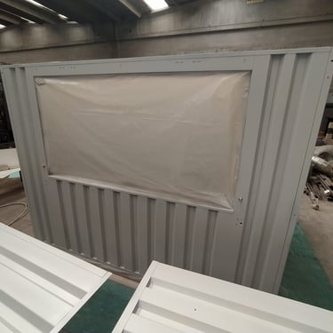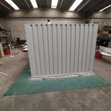 I moduli prefabbricati che utilizziamo sono ordinabili in moltissimi colori ma per soluzioni particolari possiamo occuparci internamente dei trattamenti, in questo caso essendo la destinazione un posto di mare abbiamo optato per un fondo epossidico ed una finitura poliuretanica opaca con codice RAL definito dal cliente.